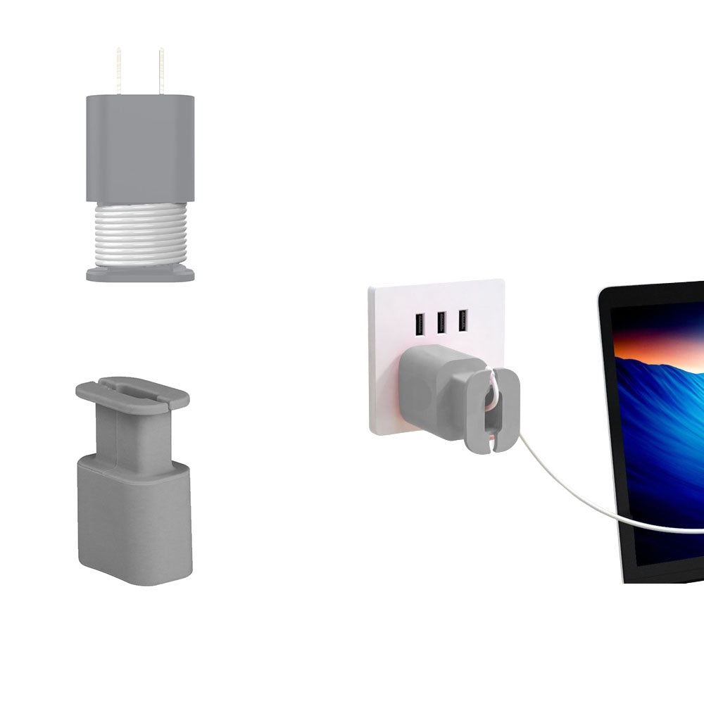 2-in-1 Silicone Charger Protector with Cord Wrap Power Adapter Case for 18W/20W Apple USB-C Charger Gray
