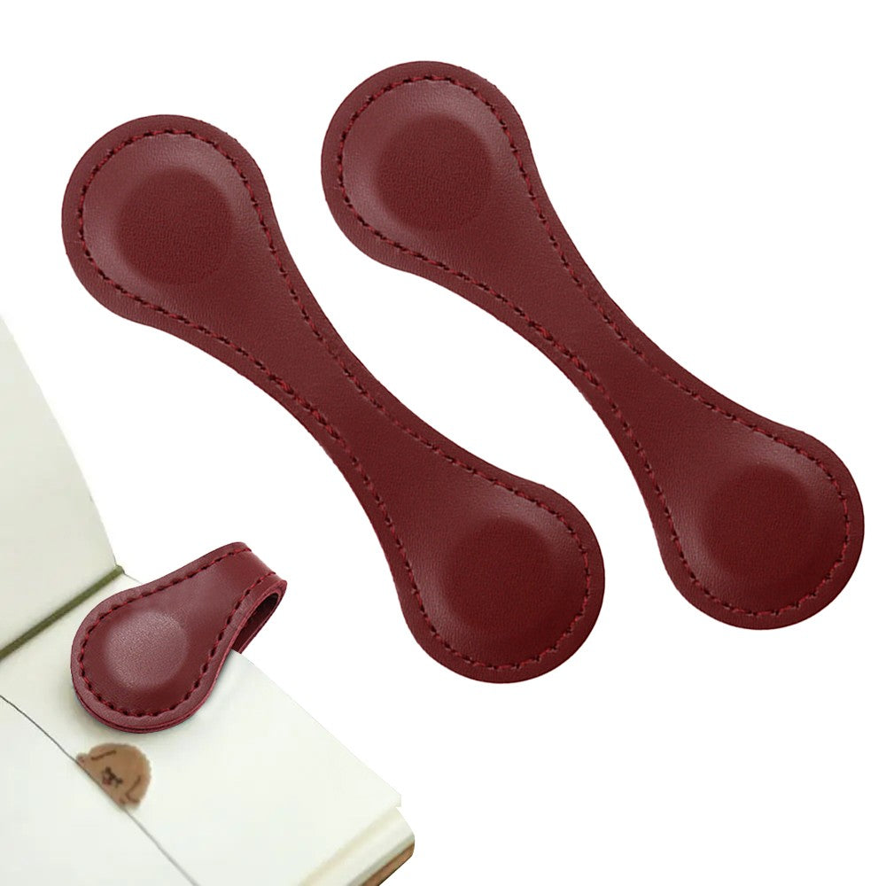2Pcs Dual-side Magnetic Bookmark PU Leather Bookmark Red