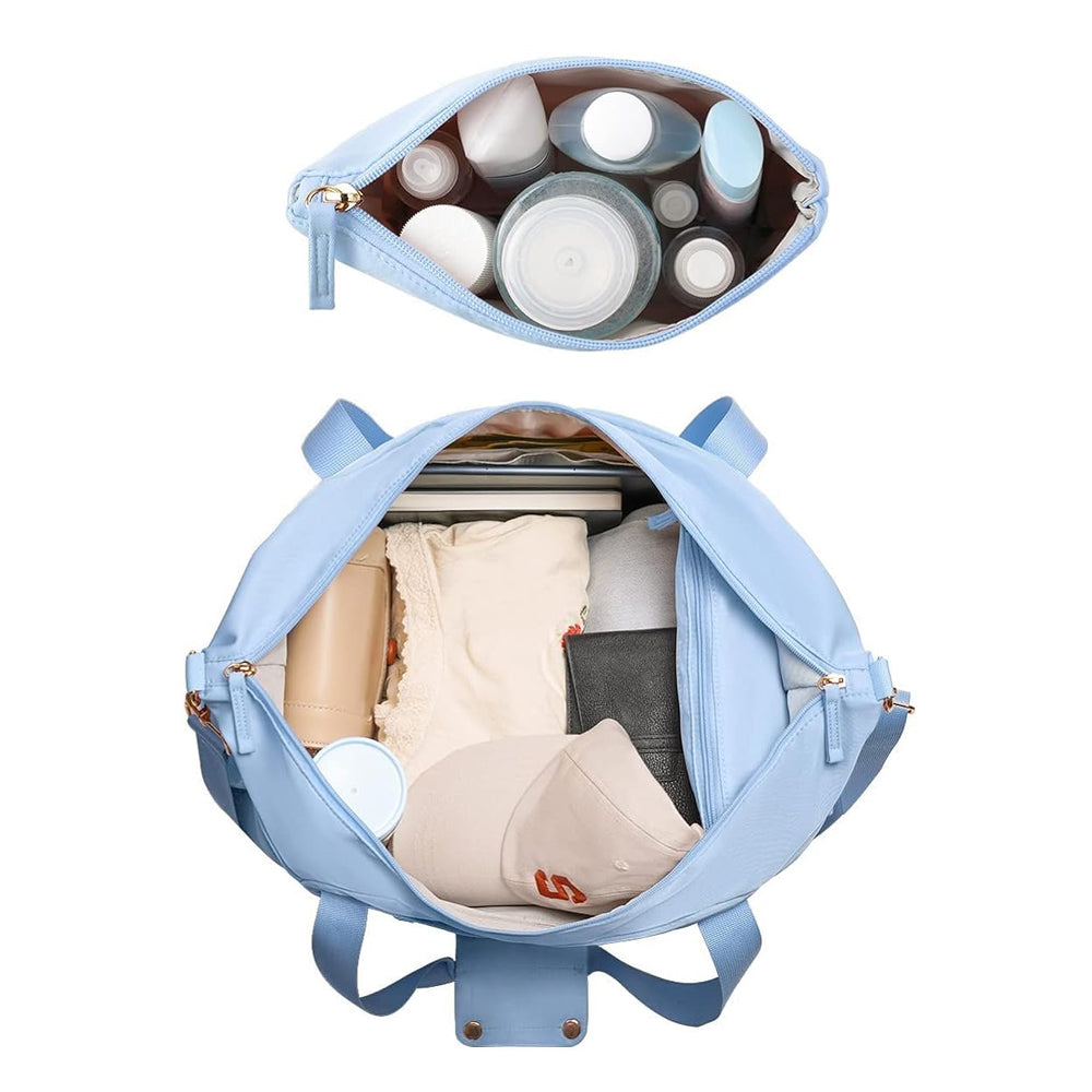 2Pcs Travel Duffel Bag and Toiletry Bag Set Sports Gym Bag with Shoes Compartment Weekender Overnight Bag Blue