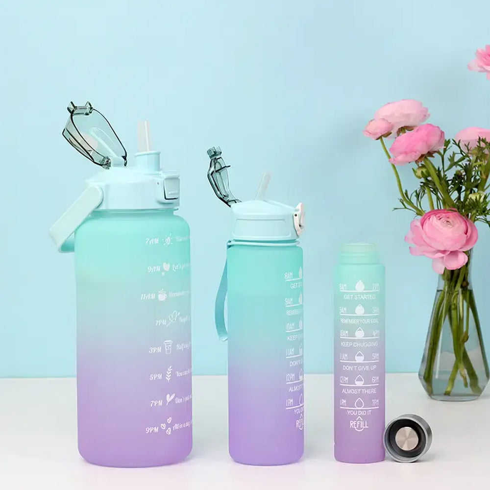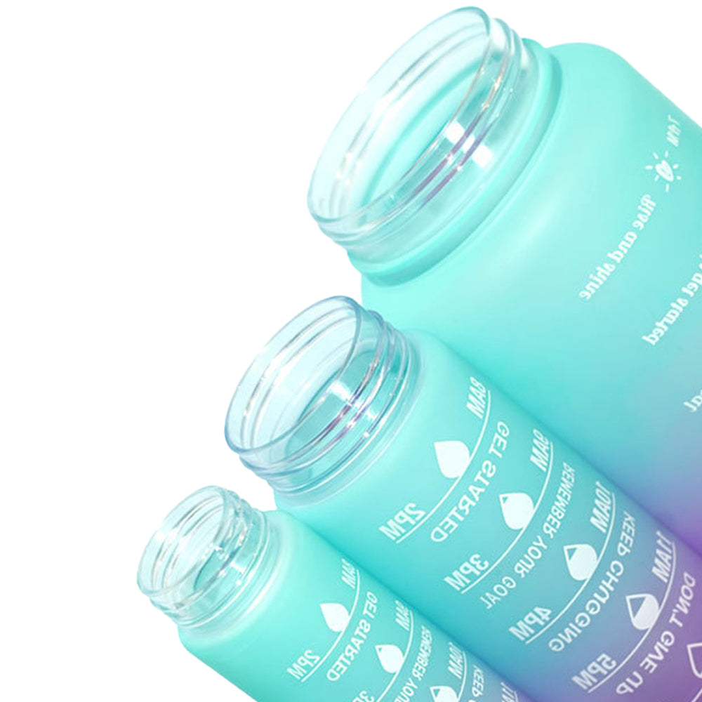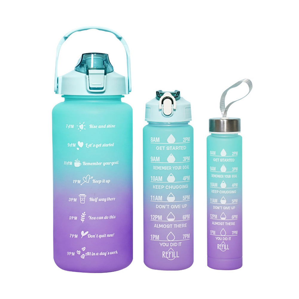 3-Piece Set Gradual-Color Motivational Water Bottles Set Sports Drinking Bottle with Time Markings Purple