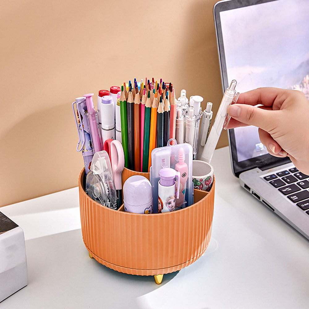 360 Degree Rotating Cosmetic Organizer Multi-Purpose Desk Organizer for Pencil Pen Art Supplies Makeup Brushes Orange