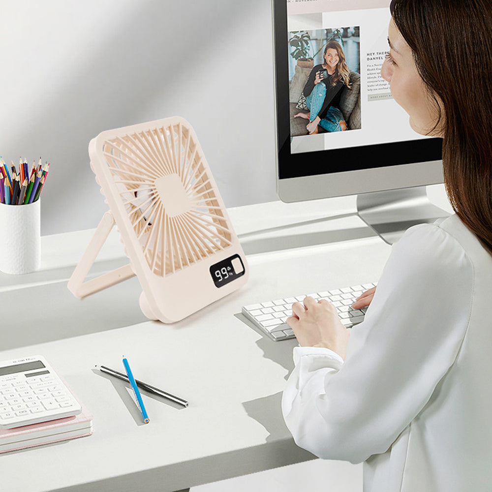 5 Speed Desktop Fan USB Rechargeable 180 Degree Foldable Digital Display Fan Cuticolour