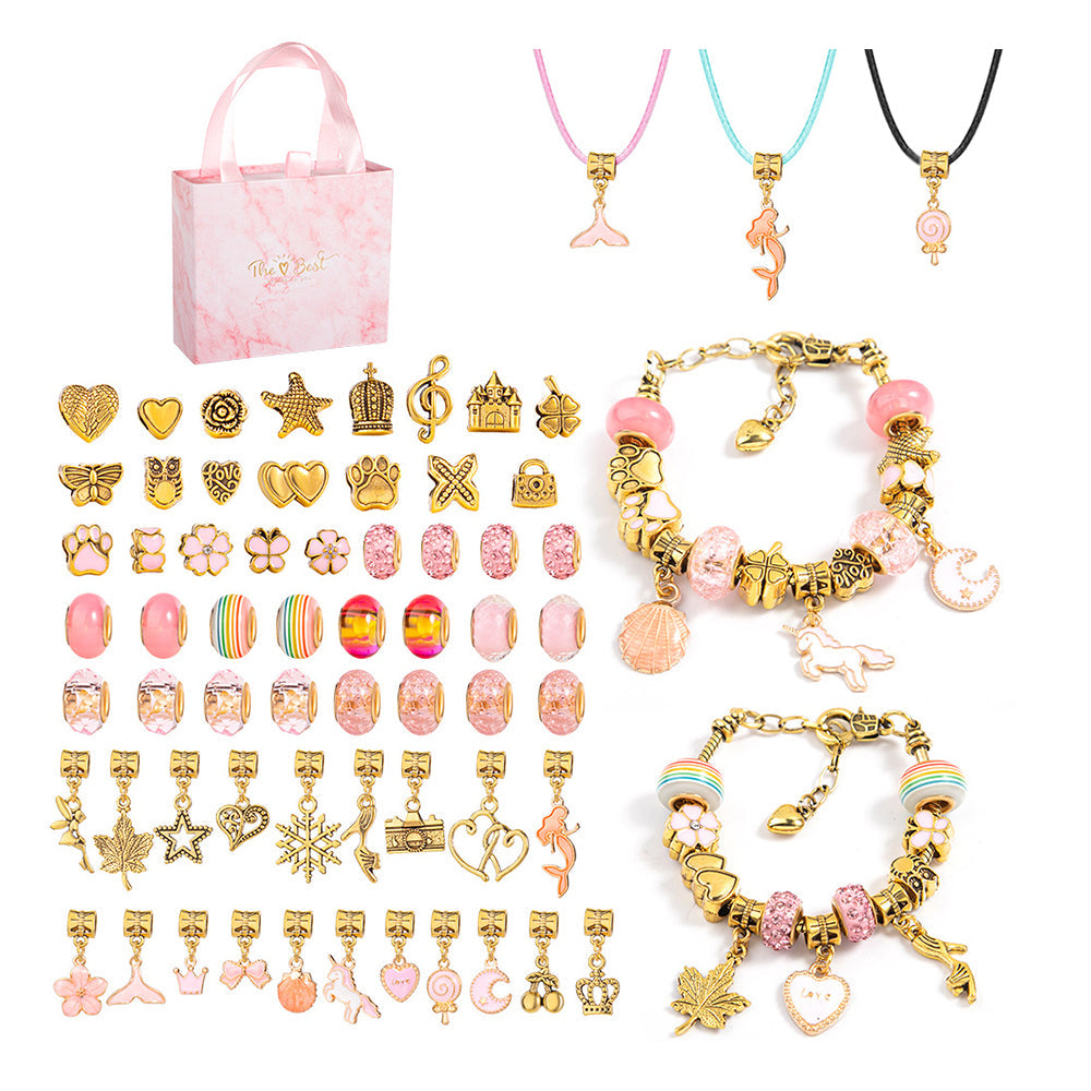 66 Pcs Kids DIY Bracelet Charm Making Kit Jewelry Making Supplies Pink