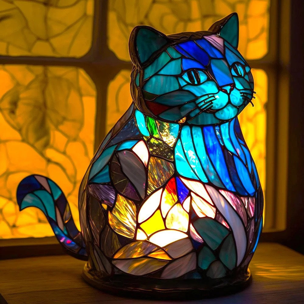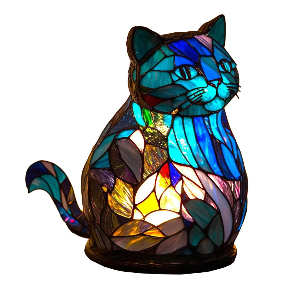 Animal Table Lamp Stained Painting Glass-Like Night Light Resin Home Bedroom Decoration Cat Style