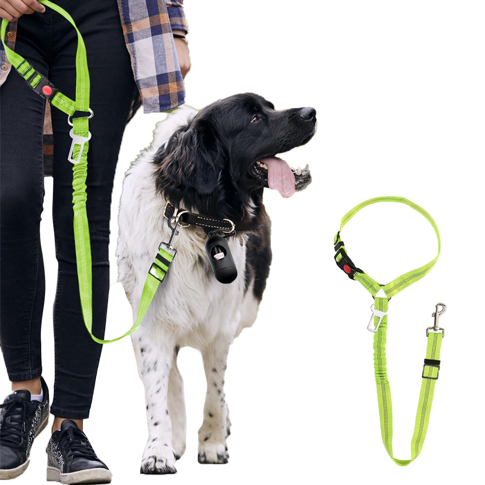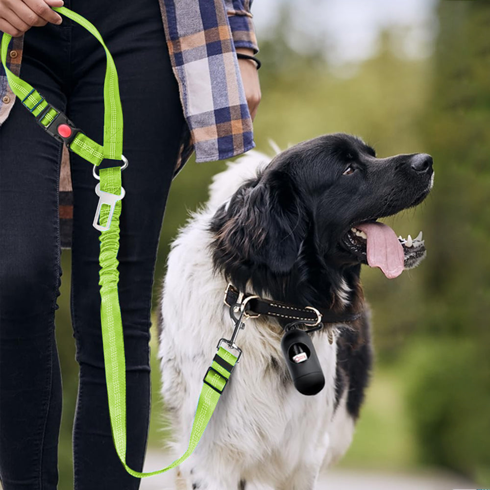 3-in-1 Removable Dog Seat Belt Harness for Car Retractable Reflective Bungee Dog Seatbelt Green