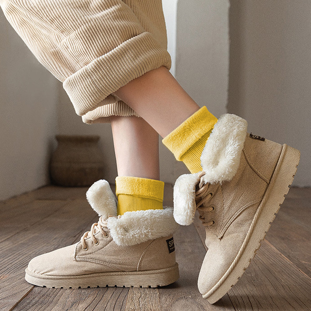 3 Pairs of Warm Plush Thermal Socks Thick Winter Snow Boot Socks for Women Yellow