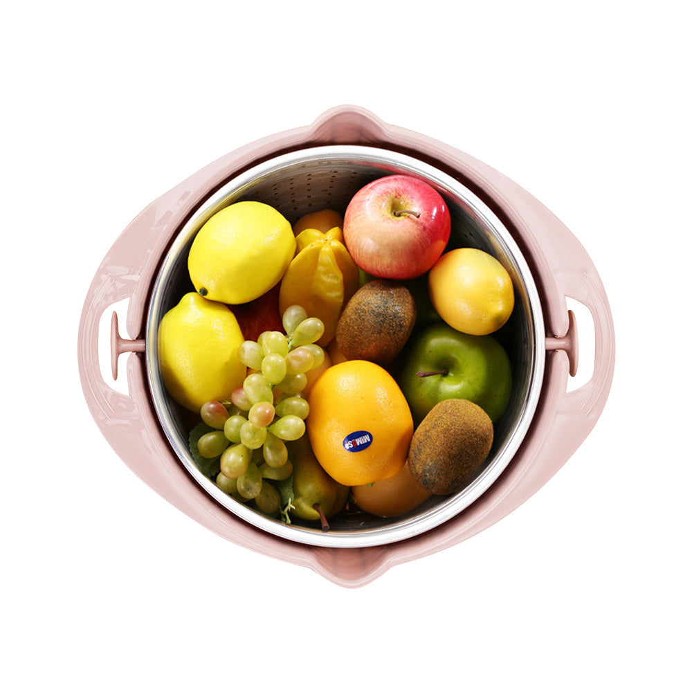 4-in-1 Rotatable Colander Drain Basket Set Kitchen Food Vegetable Washing Drain Colander Pink