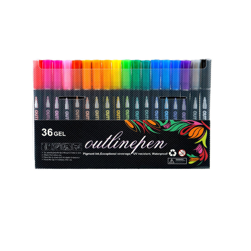 36 Color Multicolored Double Line Outline Marker Pen Set Painting Art