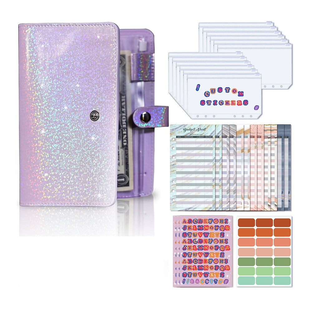 A6 PU Leather Notebook Binder Budget Planner Organizer Cover Cash Pockets Sheets Purple