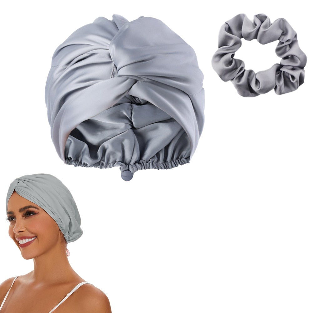 Adjustable Satin Hair Bonnet Sleeping Night Cap Hair Wrap Turban Gray