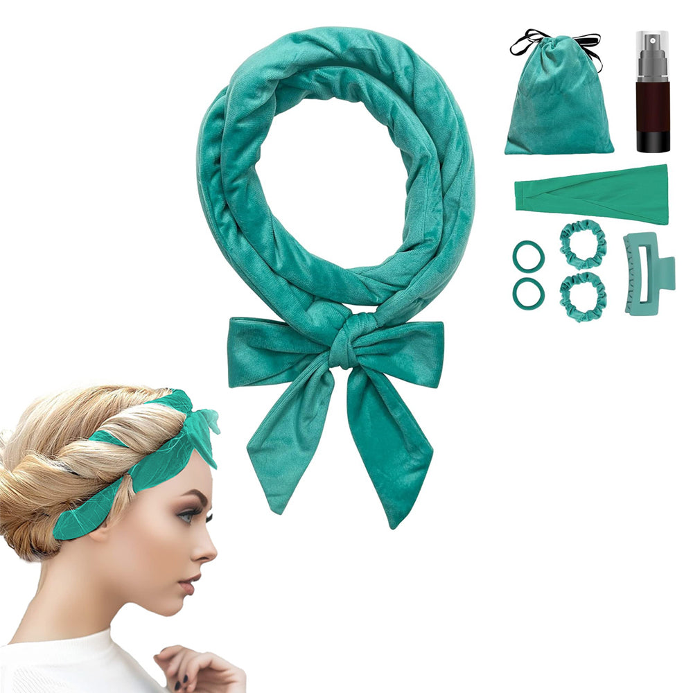 Heatless Curling Rod Headband Set Lazy No Heat Overnight Hair Curler Headband Ties for Women Girls Green