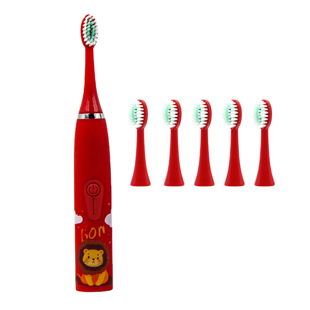 Kids Cartoon Electric Toothbrush Rechargeable Speed Control Toothbrush with 6 Replacement Heads Red