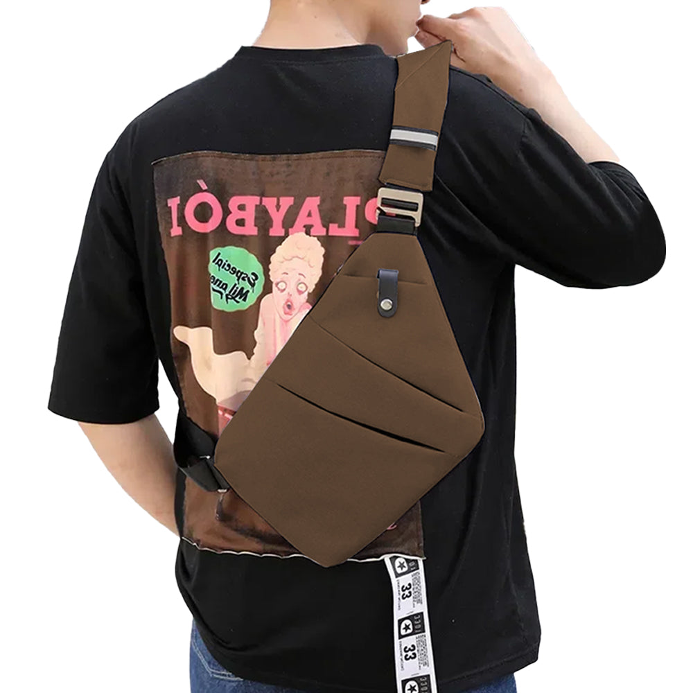 Men Anti-Theft Chest Pack Left Shoulder Sling Bag Travel Crossbody Bag Coffee