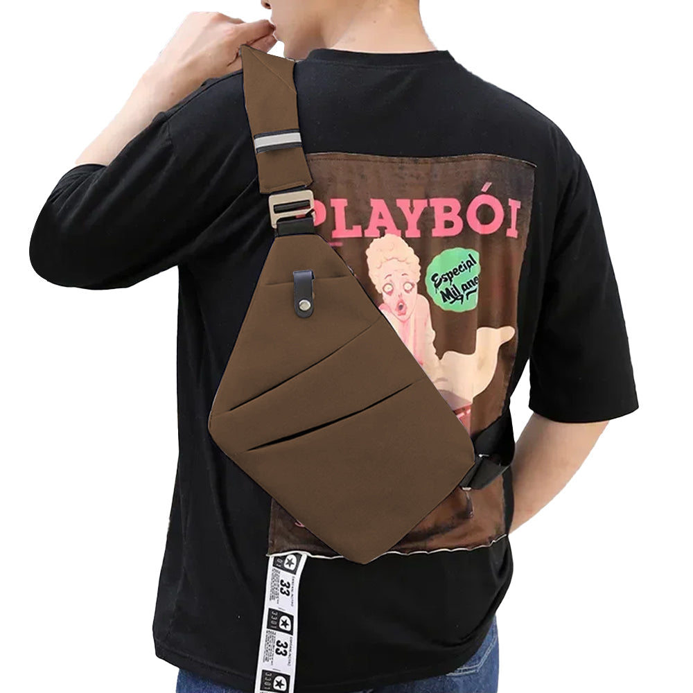 Men Anti-Theft Chest Pack Right Shoulder Sling Bag Travel Sports Crossbody Bag Coffee
