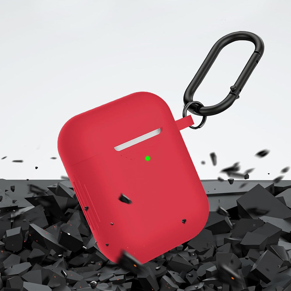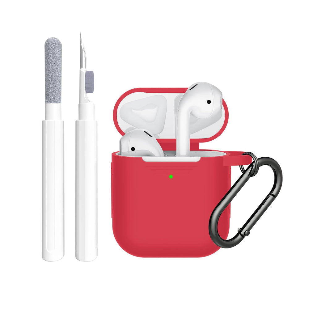 For Airpods 2nd and 1st Generation Silicone Protective Case Cover with Cleaner Kit and Keychain Red