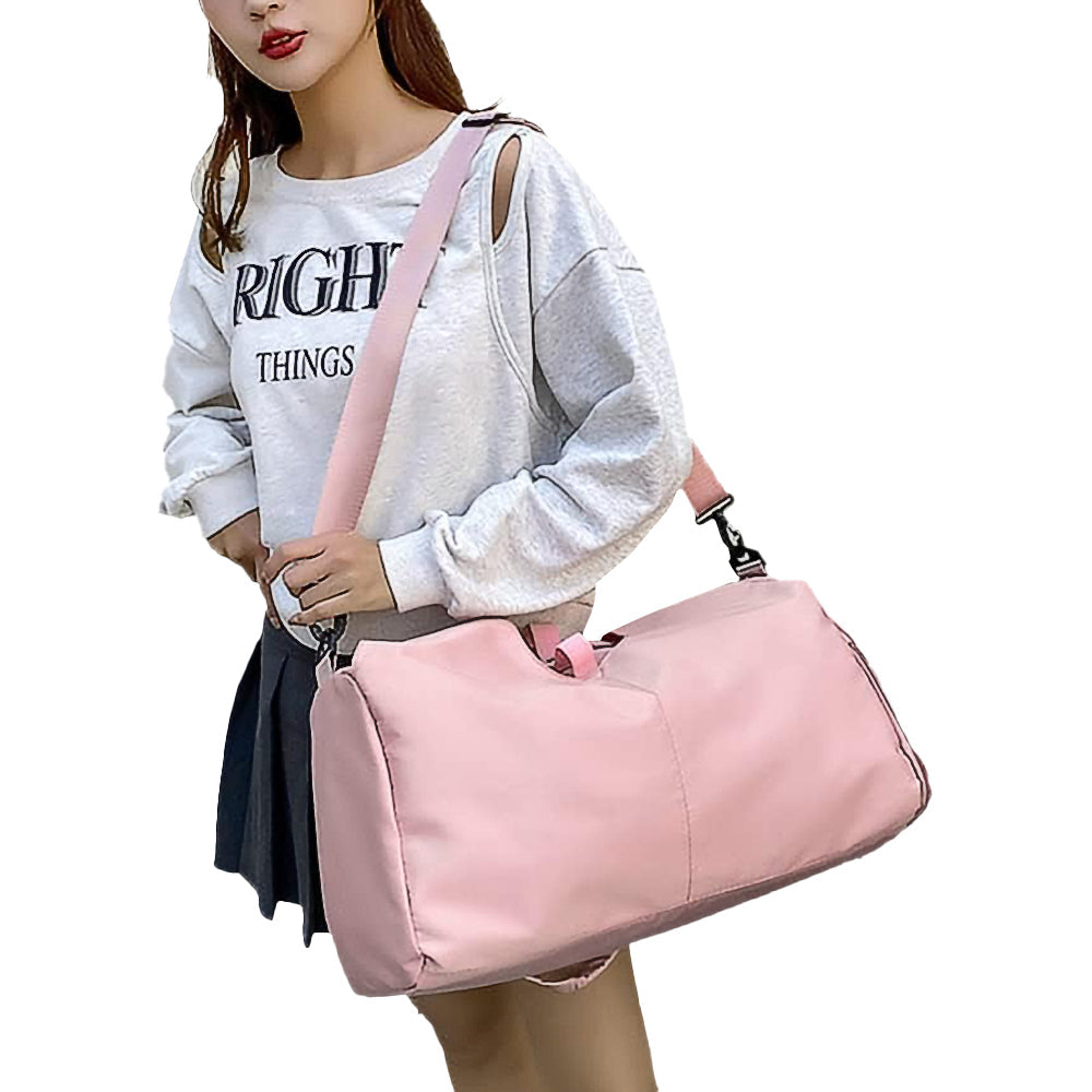 Gym Tote Bag with Shoe Compartment for Women Travel Duffel Bag Yoga Mat Holder Pink