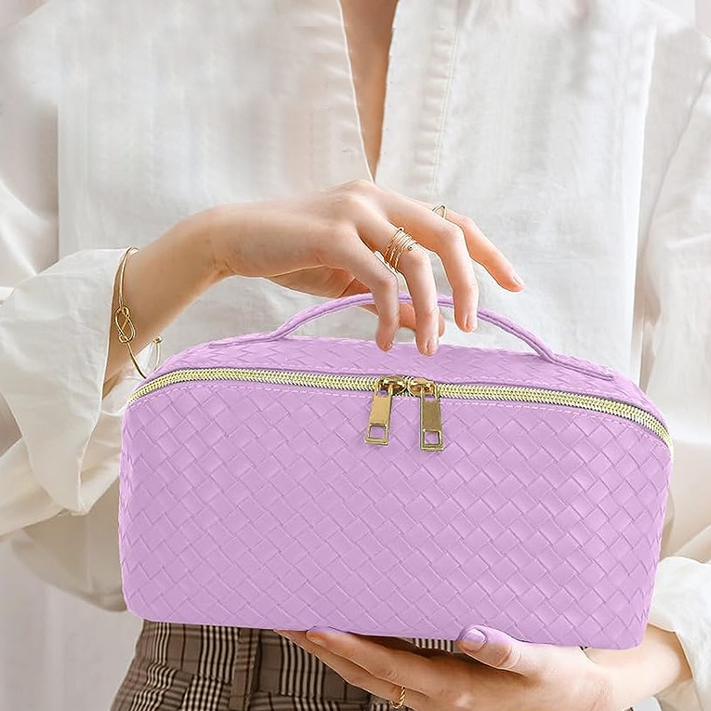 Makeup Bag Large Capacity Travel Cosmetic Bag Portable PU Leather Makeup Bag Organizer Purple