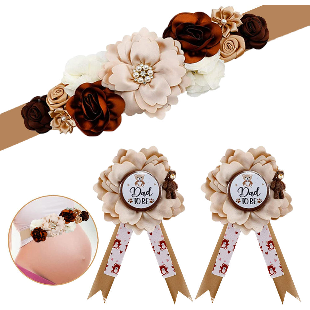 Maternity Sash and Corsage Set to Mom to Be Daddy to Be Baby Shower Decorations Pregnancy Photo Props Brown