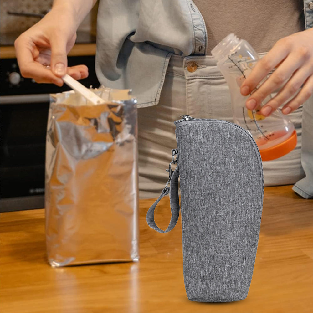 Portable Baby Feeding Milk Bottle Warmer Bag Insulation Thermal Bag Baby Bottle Holder Grey