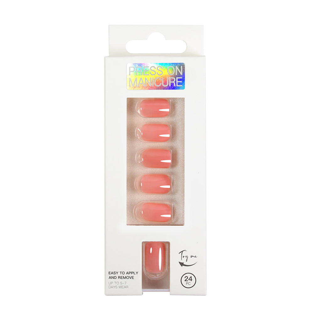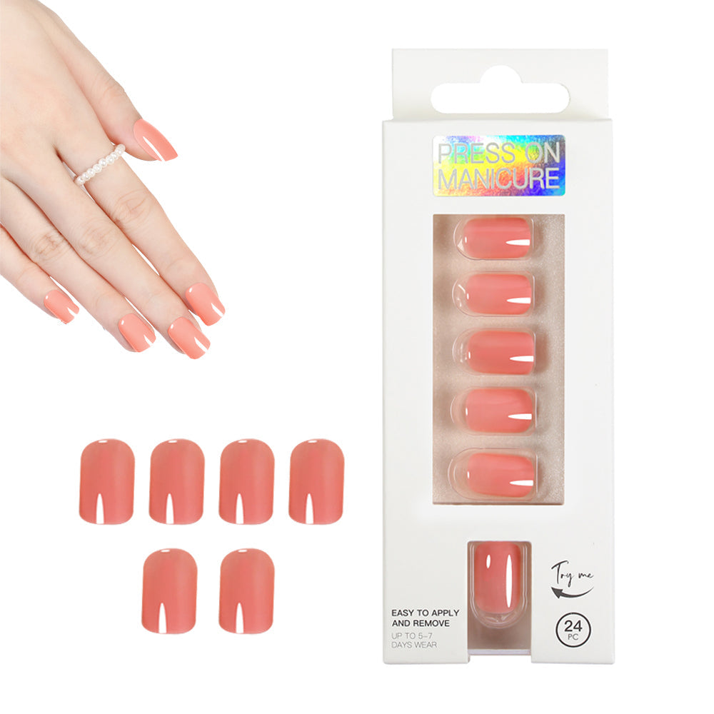 Set of 24Pcs Press On Nails Solid Color Self-Adhesive Fake Nails Pink