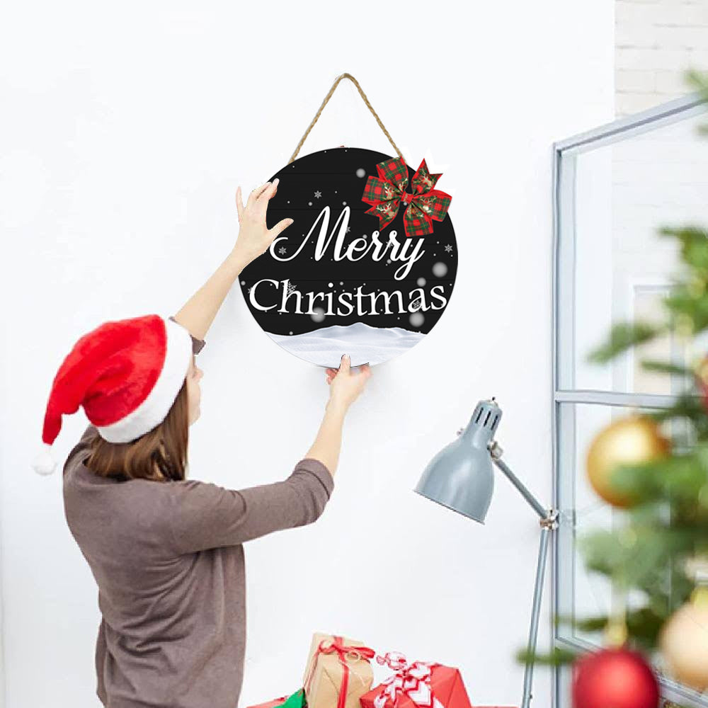 Wooden Christmas Door Sign Christmas Welcome Door Wall Hanging Decoration Style 4