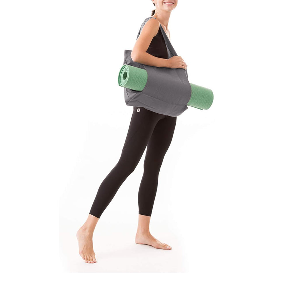 This canvas bag that can hold a yoga mat on the outside is a must-have for yoga enthusiasts.