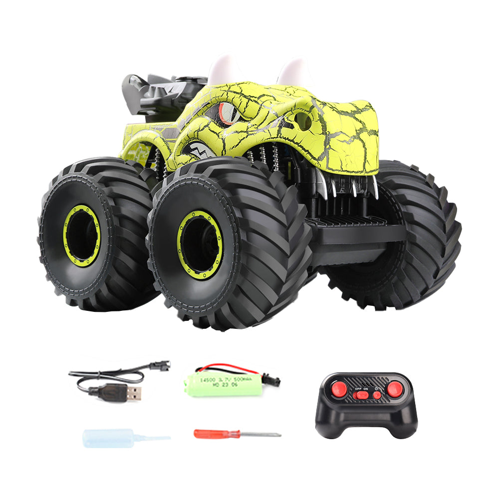 Dinosaur Toy Car RC Stunt Car 360 Degree Rolling Twister with Light Green