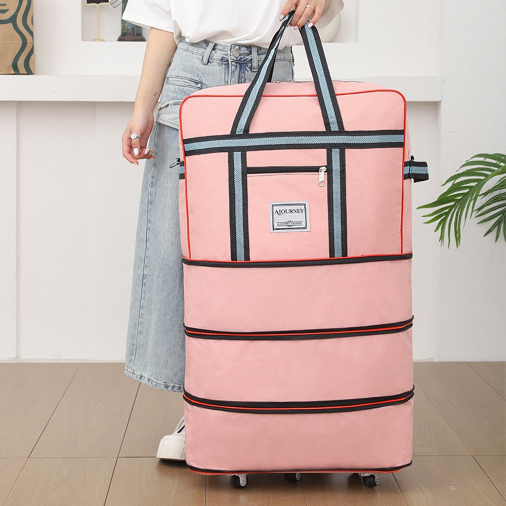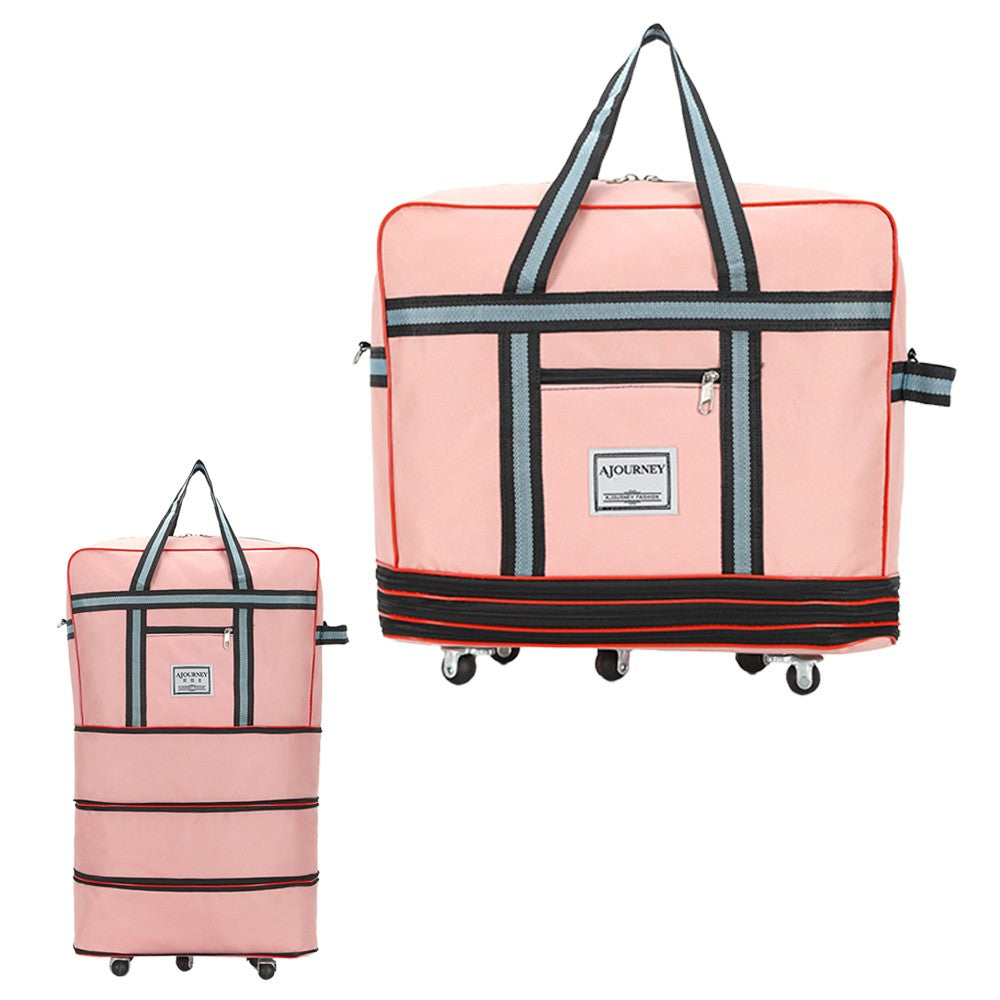 Expandable Foldable Luggage Bag with Universal Wheels Rolling Travel Bag Duffel Bag Pink