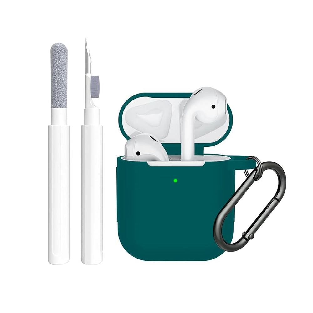 For Airpods 2nd and 1st Generation Silicone Protective Case Cover with Cleaner Kit and Keychain Green