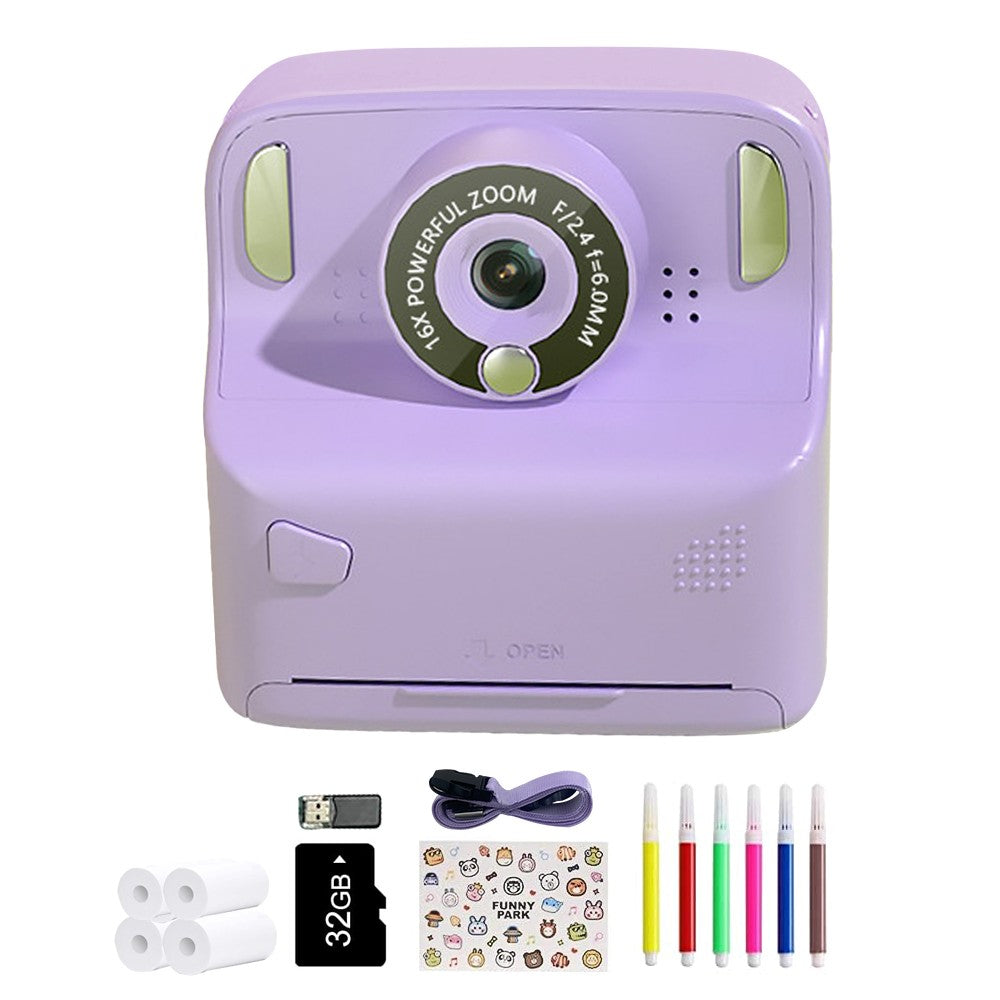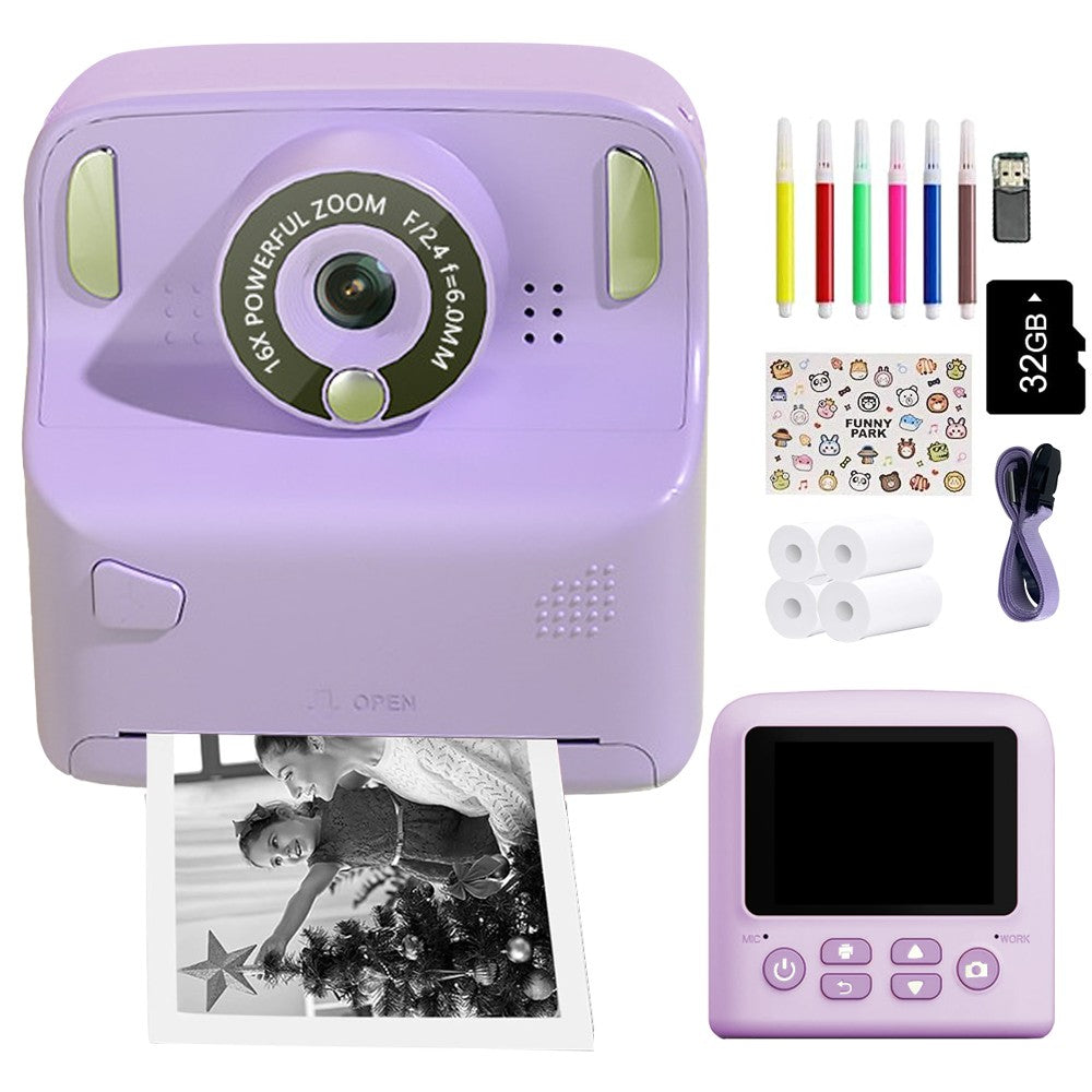 Kids Instant Print Camera with Memory Card and 5 Rolls of Print Paper Purple