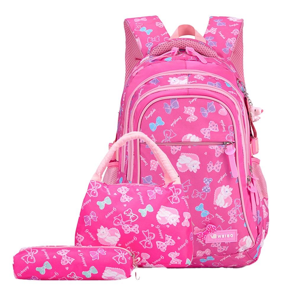 3pcs Set Kids School Bag Children Travel Backpack Rose Red