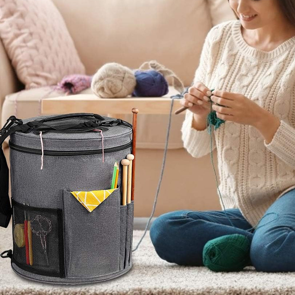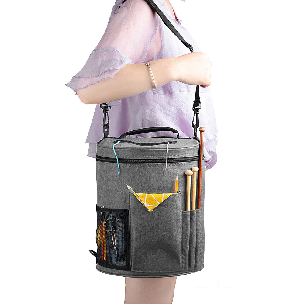 Large Capacity Knitting Tote Storage Bag Portable Yarn Organizer with Shoulder Strap Yarn Bags Grey