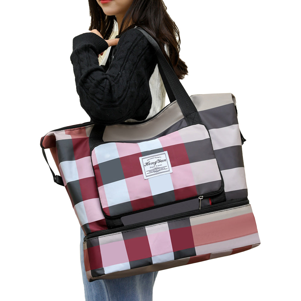 Foldable Large Capacity Travel Duffel Bag Overnight Bag Dry and Wet Separation Travel Bag Pink