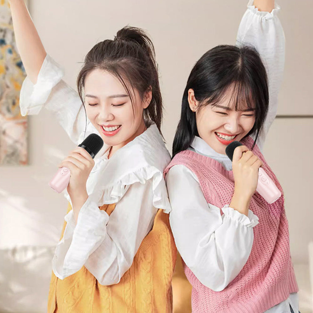 Mini Karaoke Machine Portable Bluetooth Speaker with 2 Wireless Microphones Pink