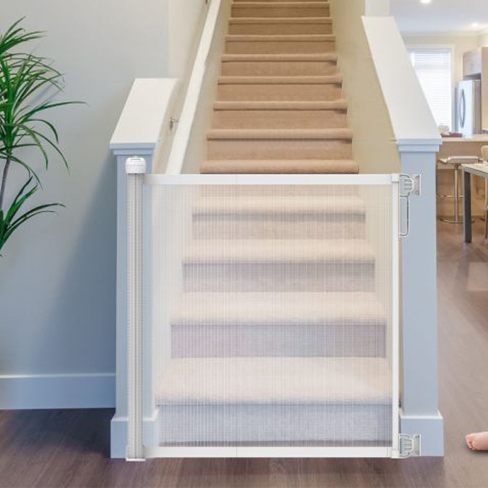 Retractable Safety Fence Mesh Stairs Gate Pets Barrier for Dog Cat Baby White