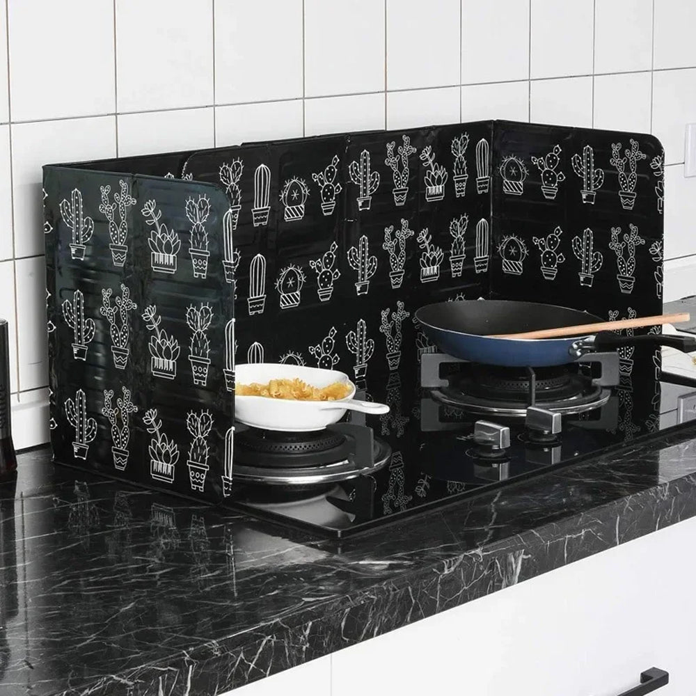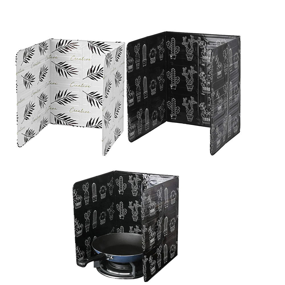 Set of 2Pcs Foldable Oil Splatter Screens Aluminium Foil Gas Stove Splash Proof Baffle Home Kitchen Cooking Gadgets Black and White