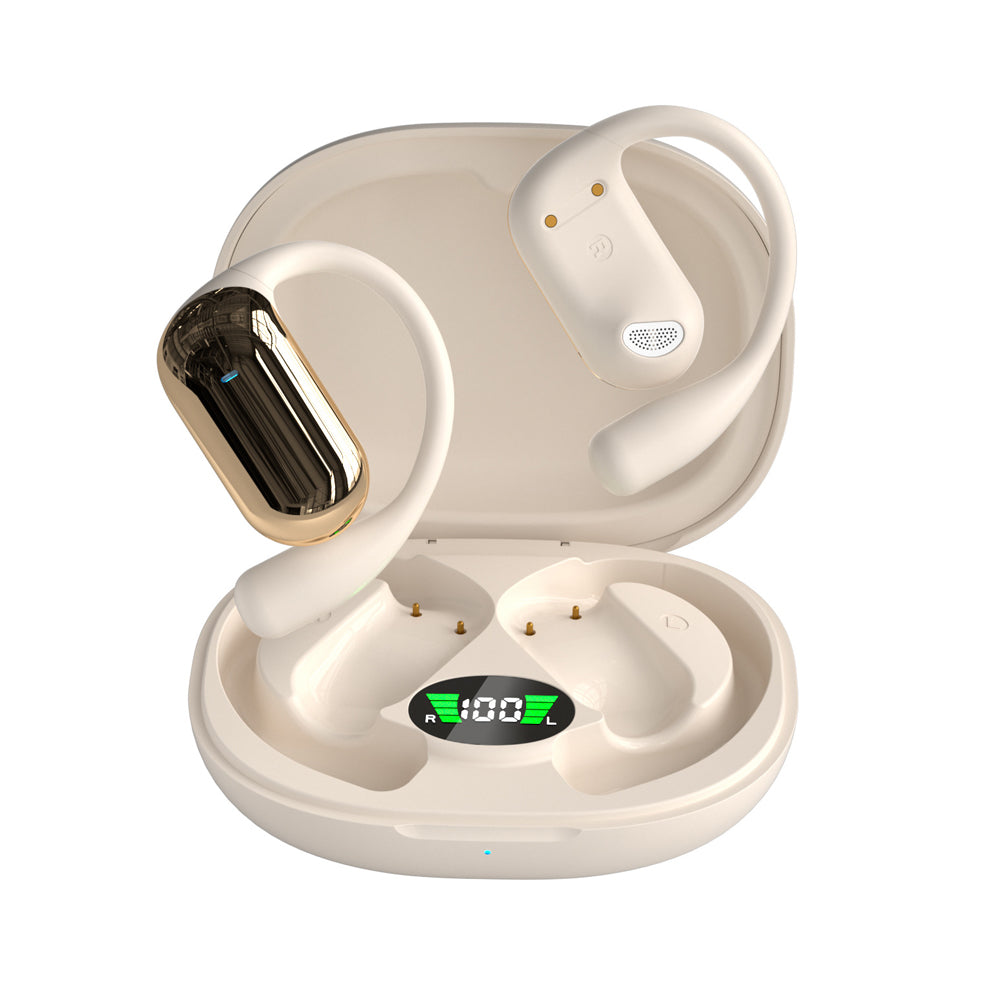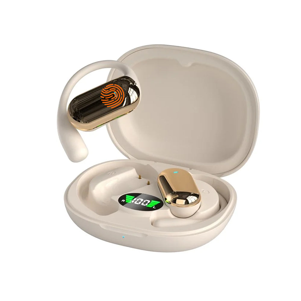 Wireless Bluetooth 5.4 Earbuds Touch Control Earhook Earphones Sports Earbuds with Digital Display Case Khaki