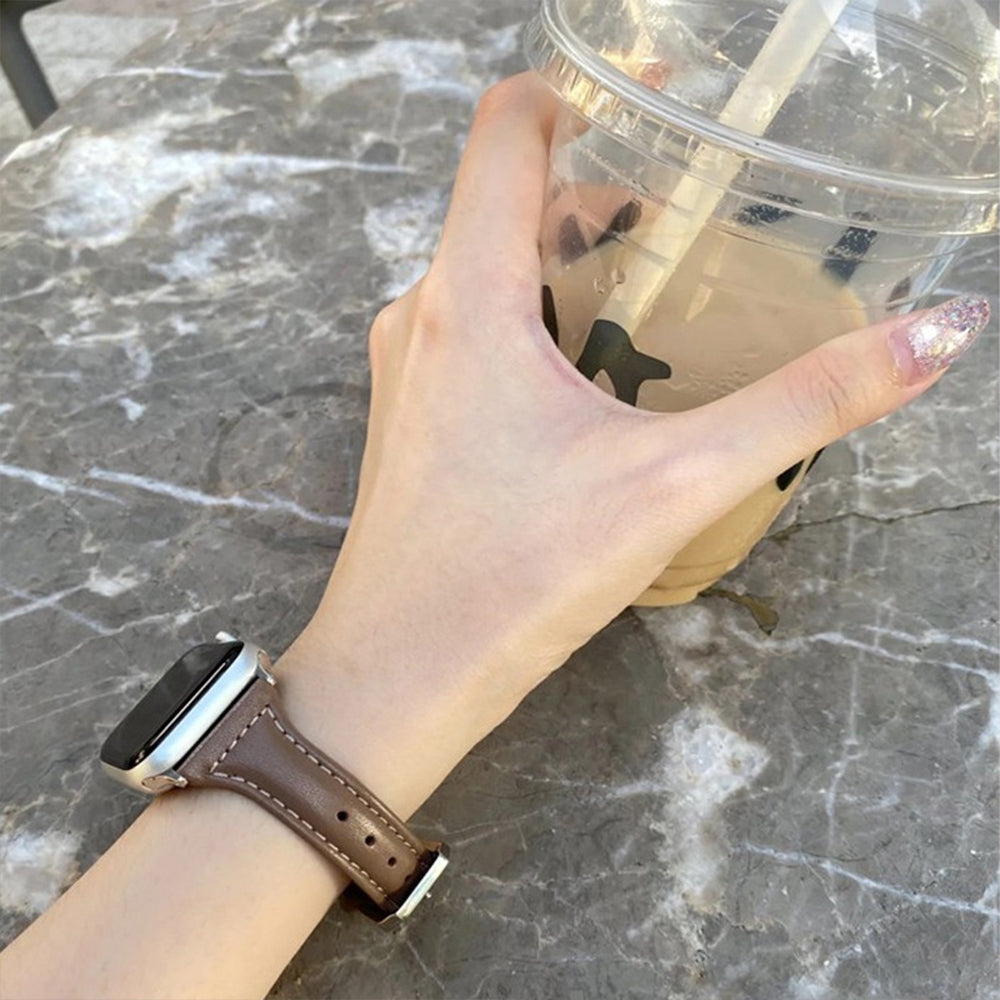 Women Leather Watch Band Compatible with Apple iWatch 7 Series Dark Brown-8cm
