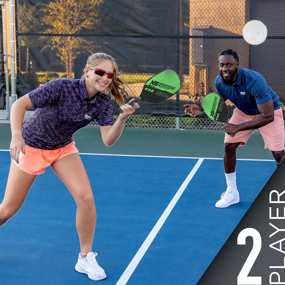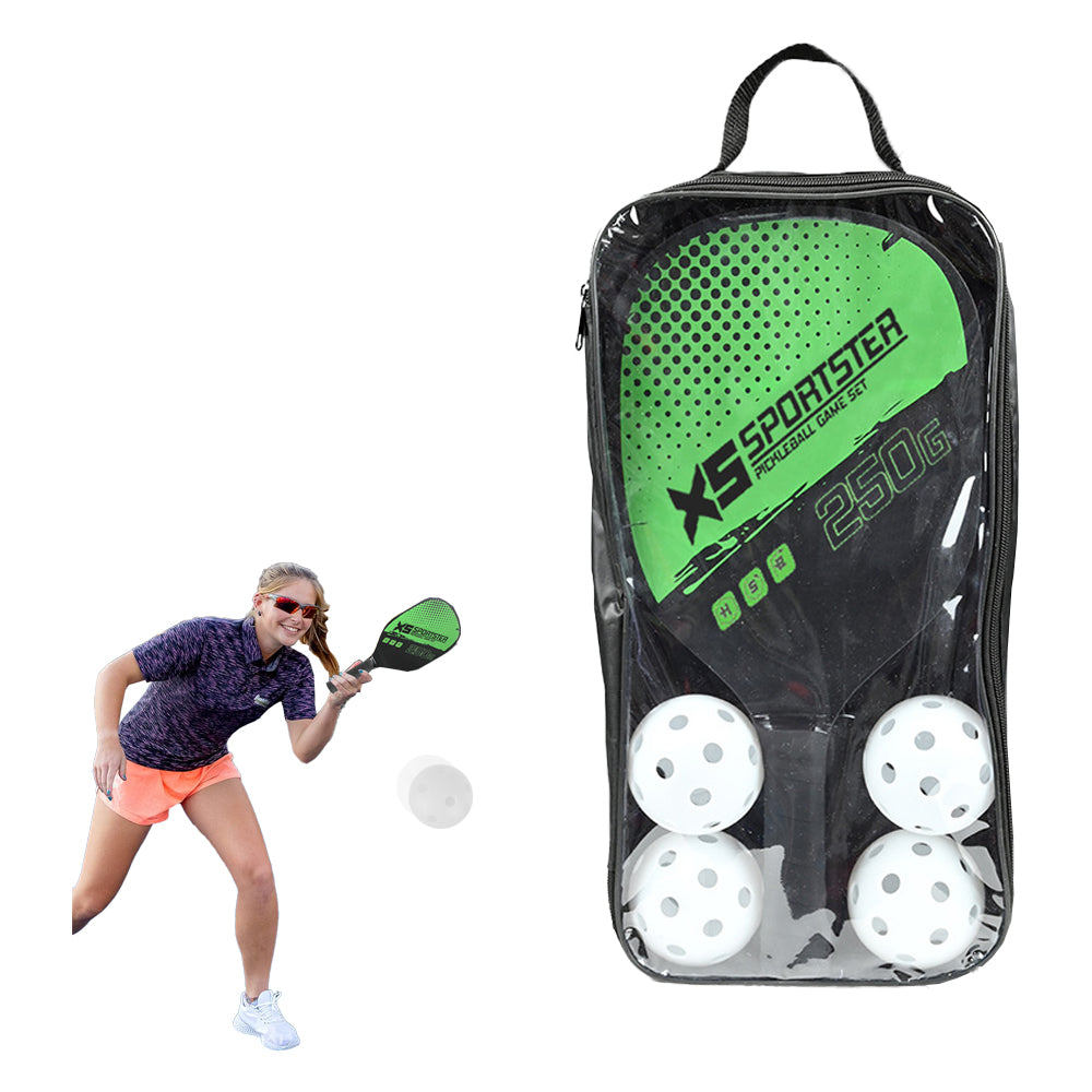 The pickleball paddle set includes 2 paddles and 4 pickle balls, can be used indoors and outdoors for easy interaction with family and friends.