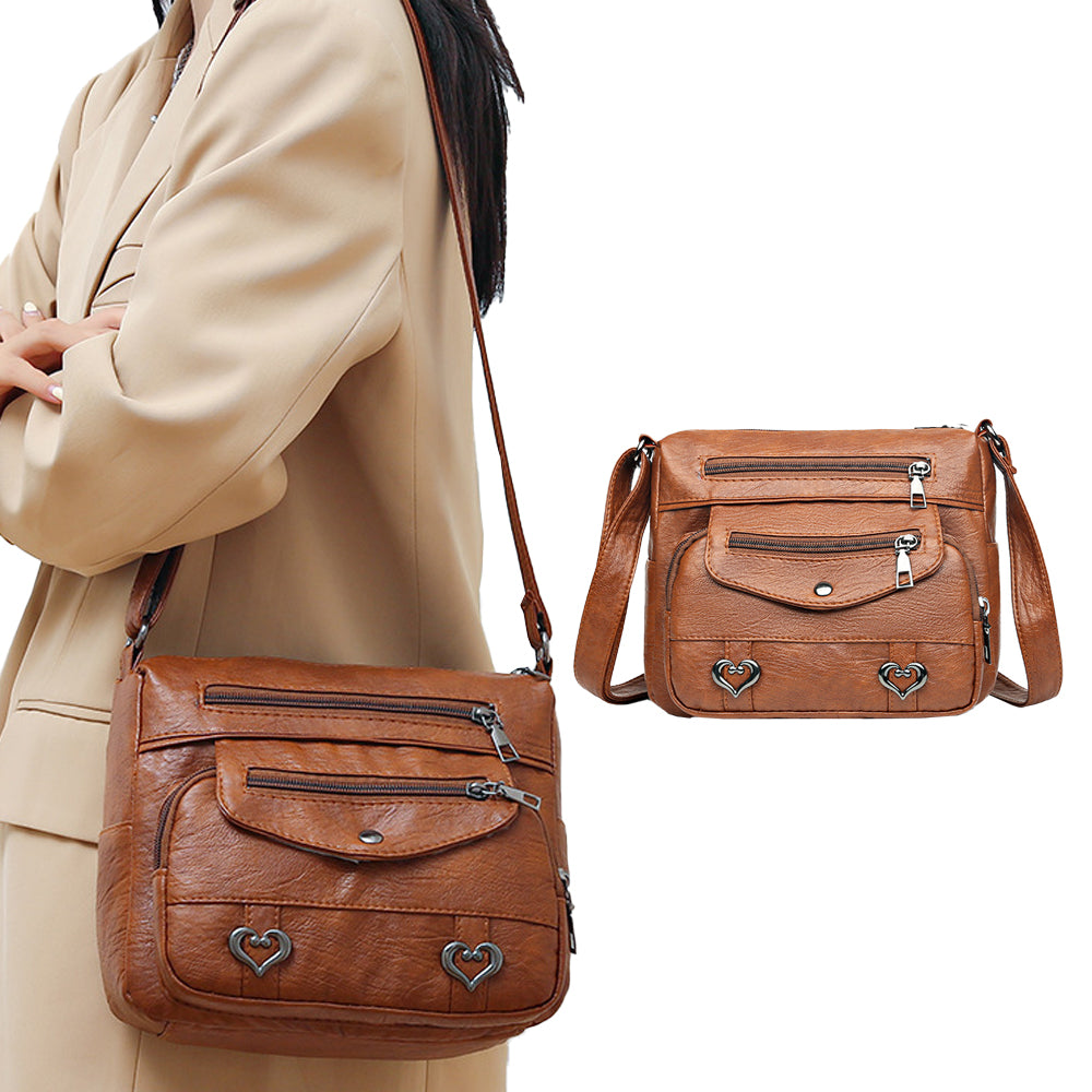 Crossbody Bag for Women Leather Messager Bag Large Capacity Shoulder Bag Brown