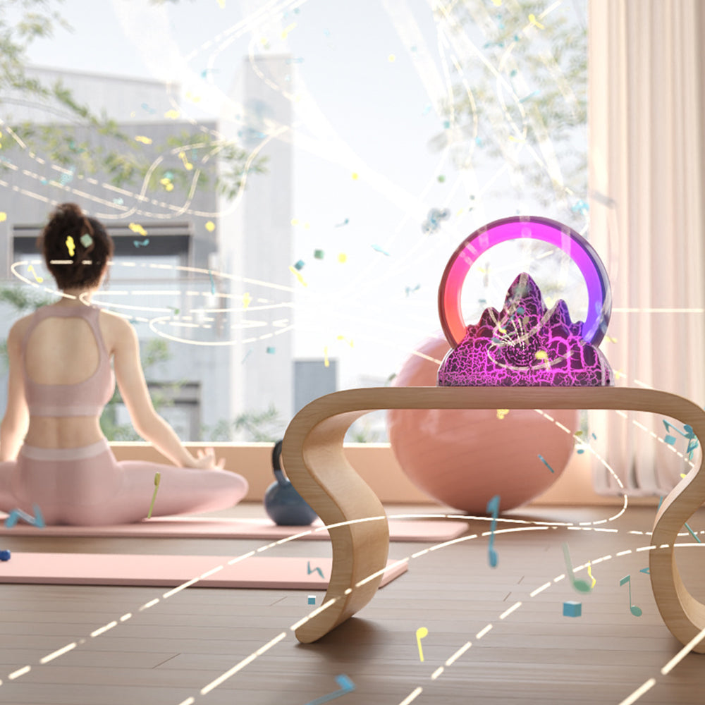 - Novel sunrise volcano design, light shones through the mountain cracks, giving a sense of volcanic eruption.