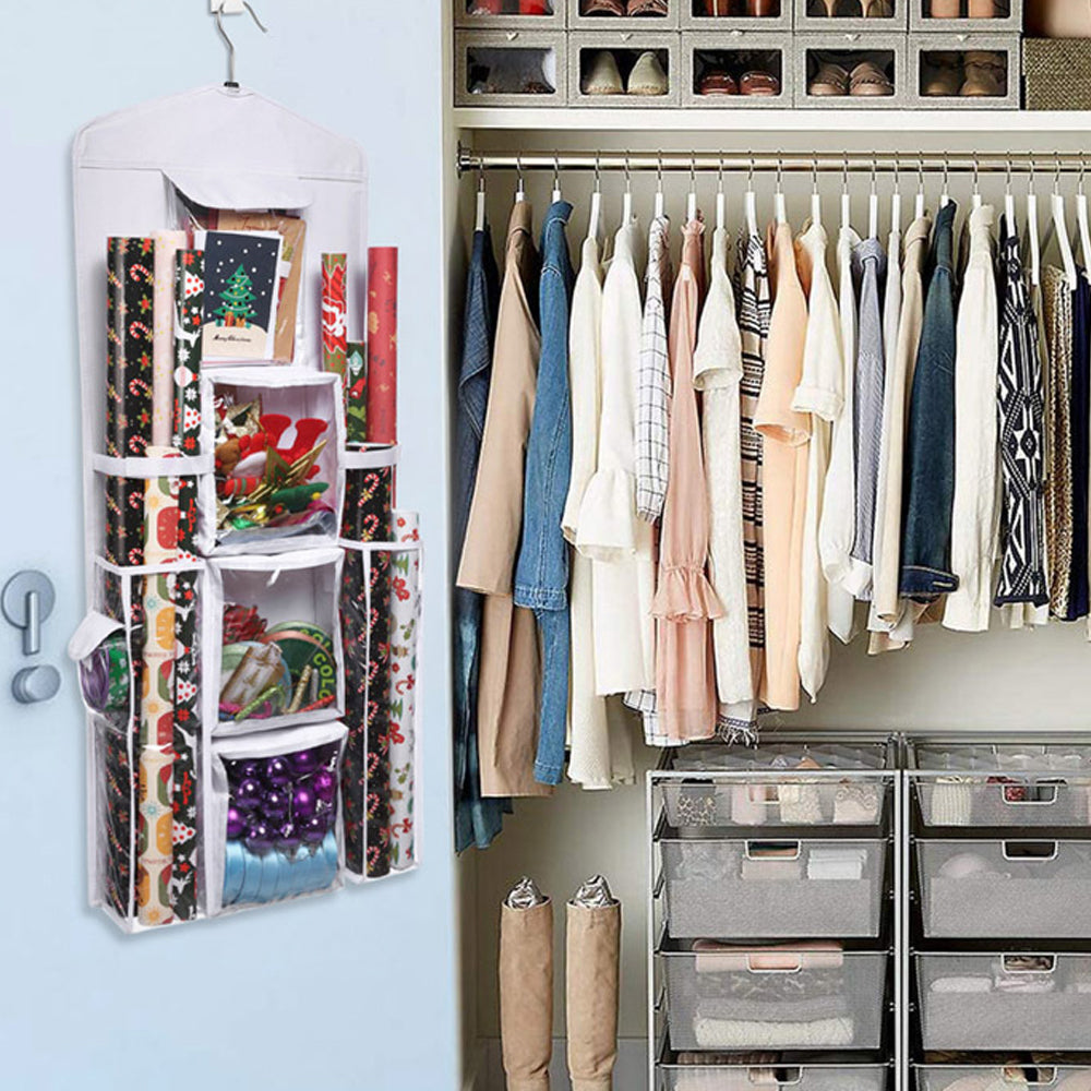 Double Sided Hanging Gift Wrap Organizer Wrapping Paper Bag Storage White