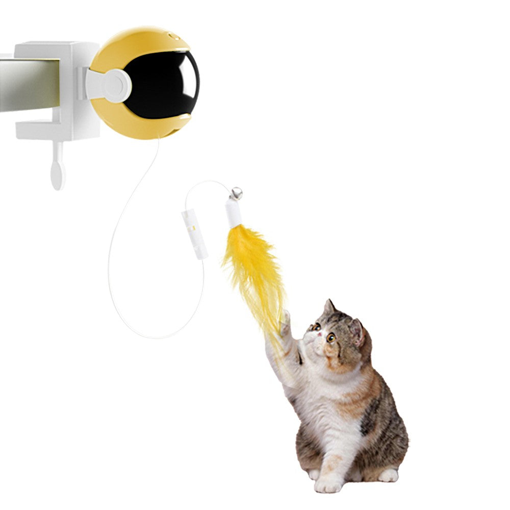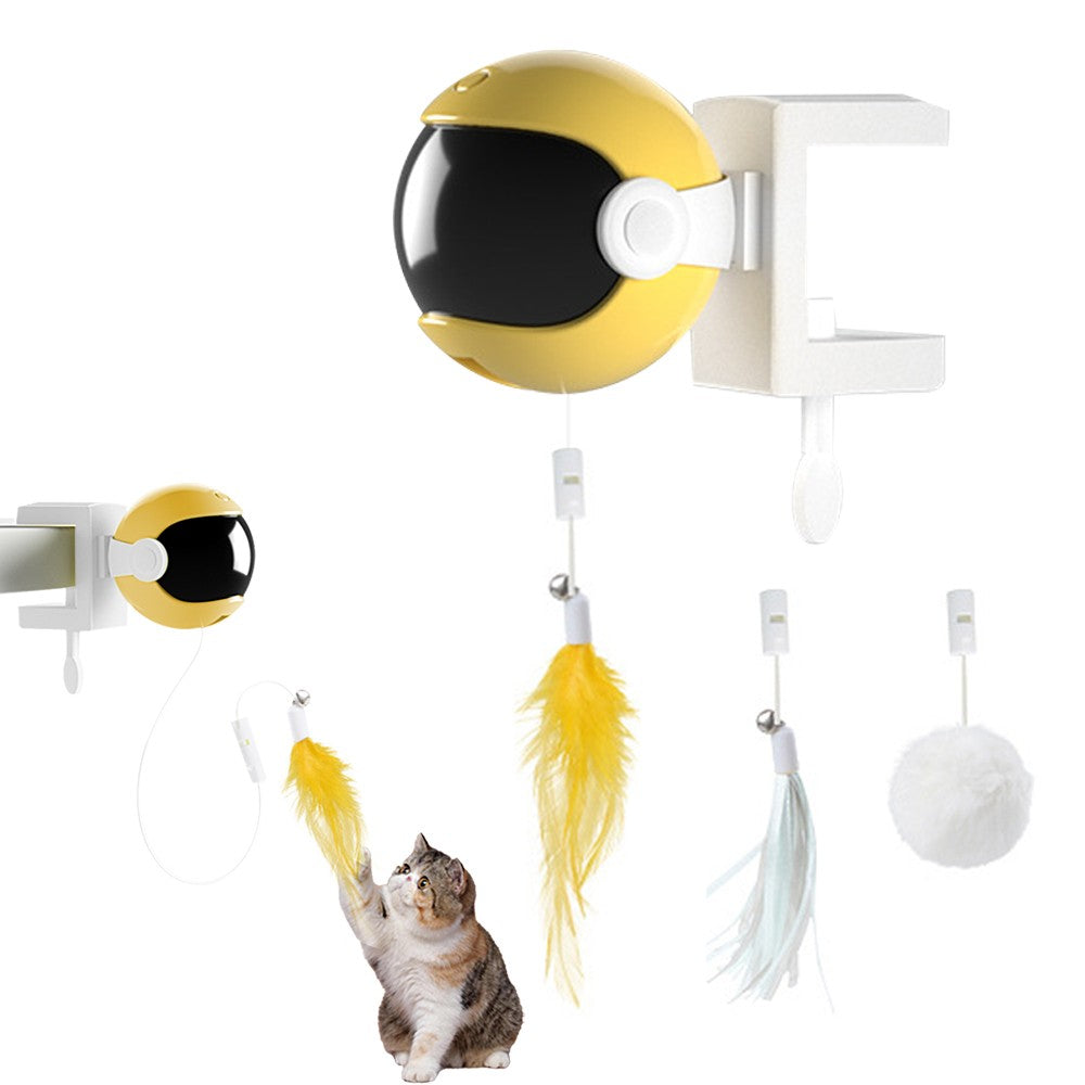 Electric Interactive Cat Toys Automatic Lifting Cat Teaser Toys Set Yellow