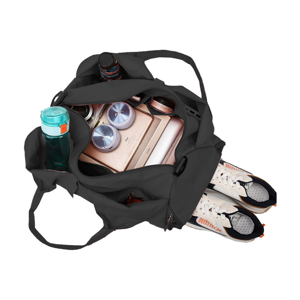 Gym Tote Bag with Shoe Compartment for Women Travel Duffel Bag Yoga Mat Holder Black