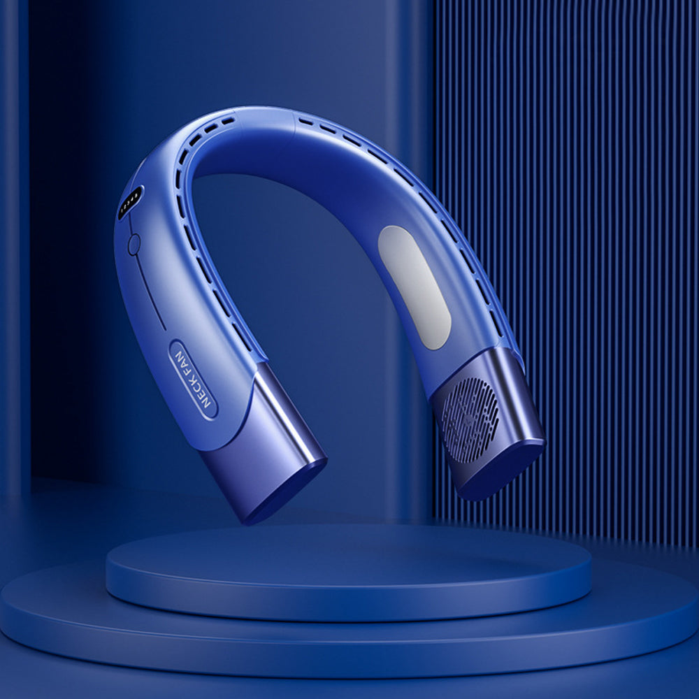 Hanging Neck Fan Wearable Bladeless Fan USB Rechargeable Cooling Fan with 5 Speed Adjustment Blue
