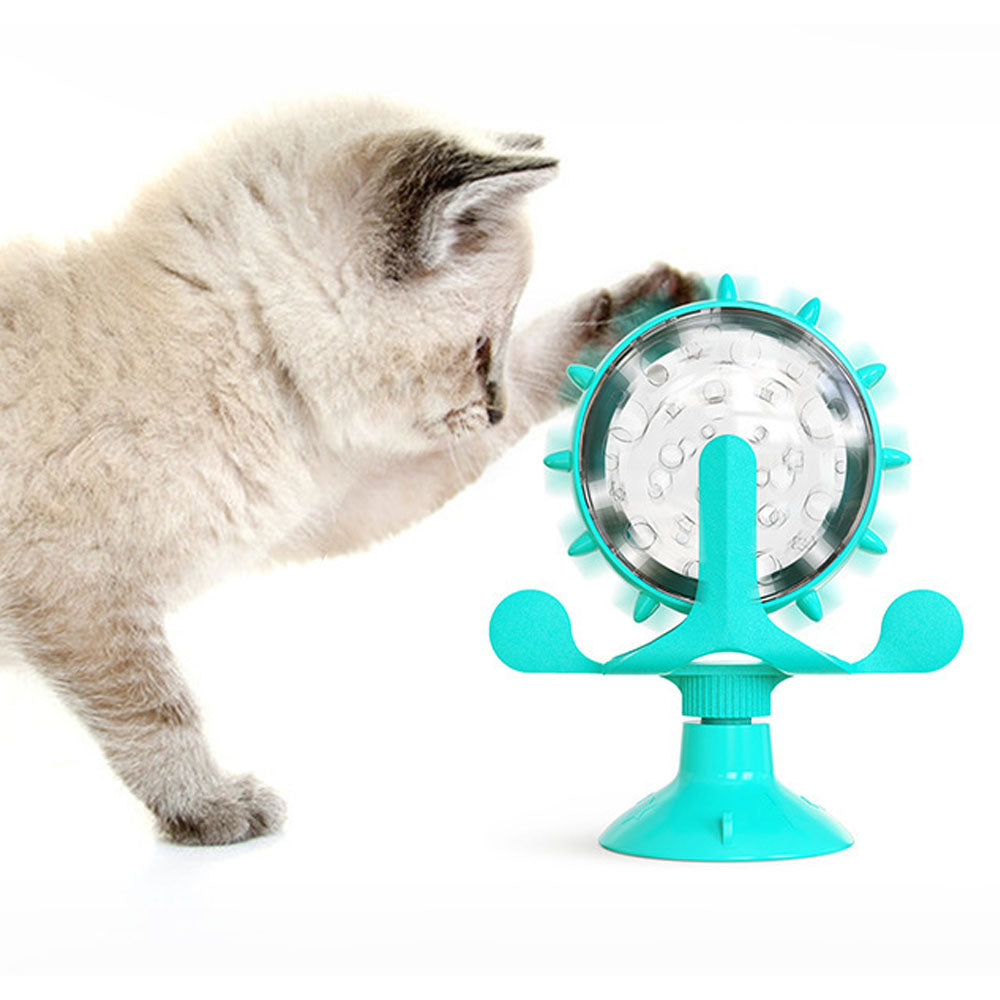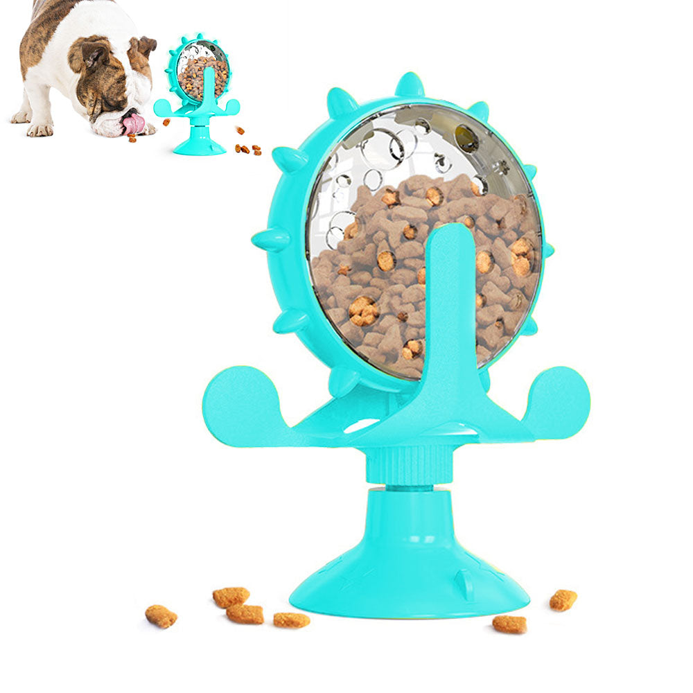 Interactive Pet Treats Dispenser Toy 360 Degrees Rotating Windmill Toy Slow Dog Cat Feeder Blue