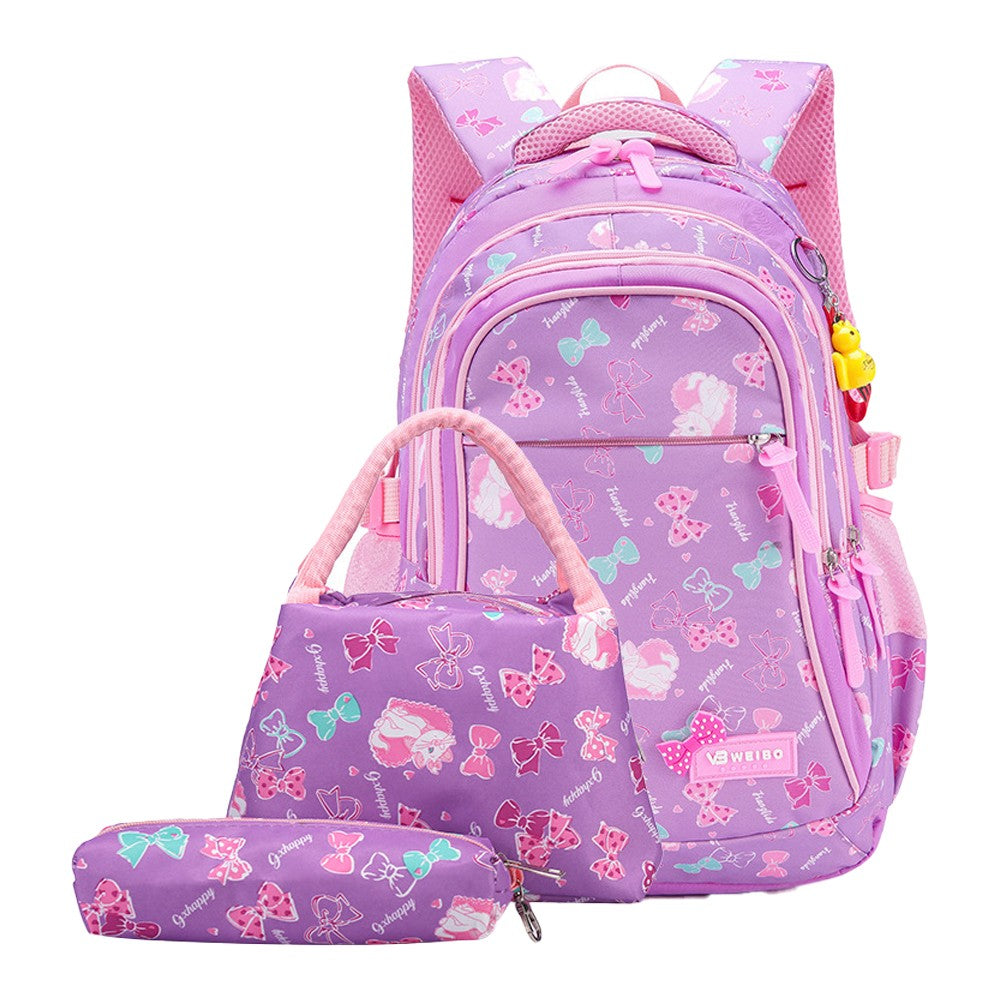 3pcs Set Kids School Bag Children Travel Backpack Purple