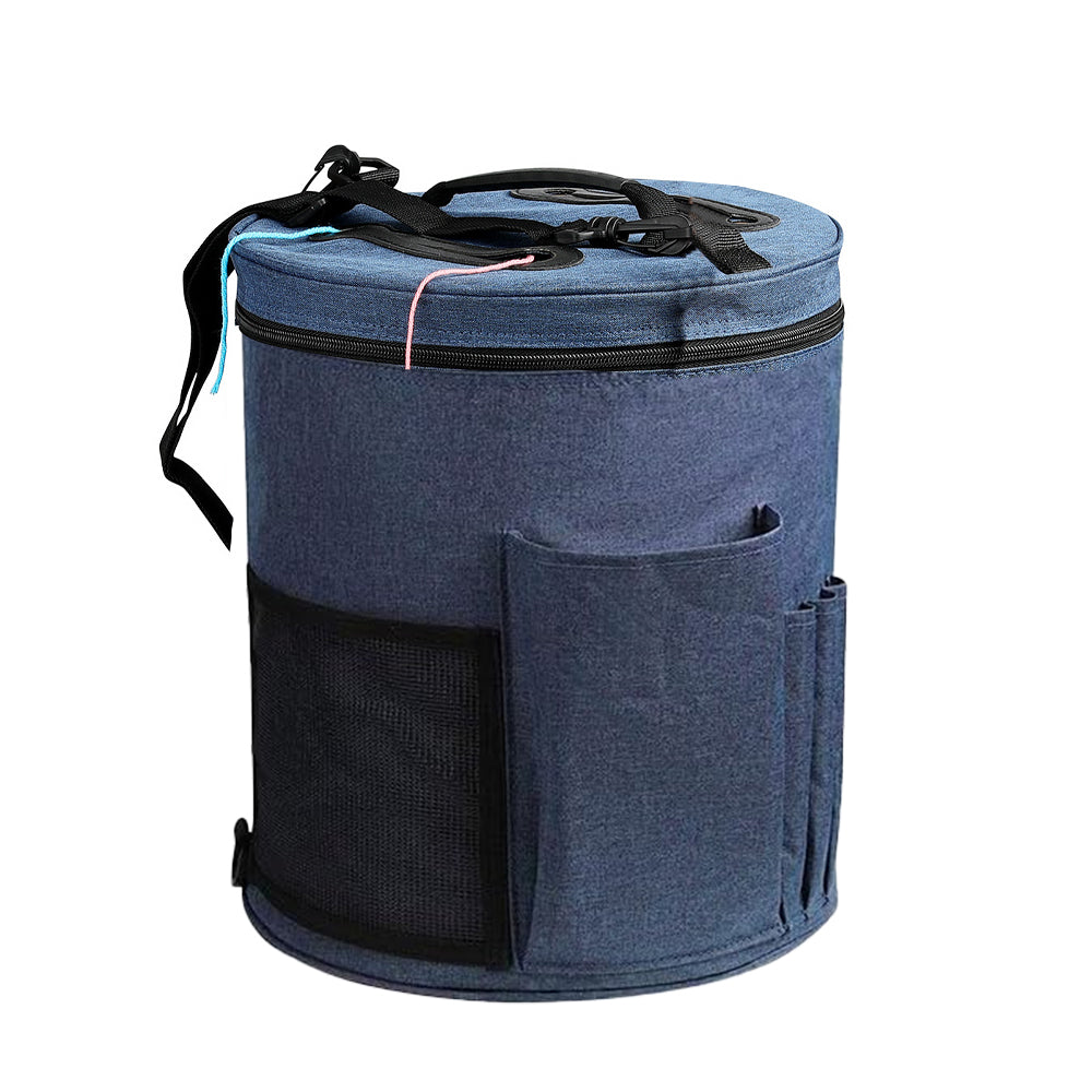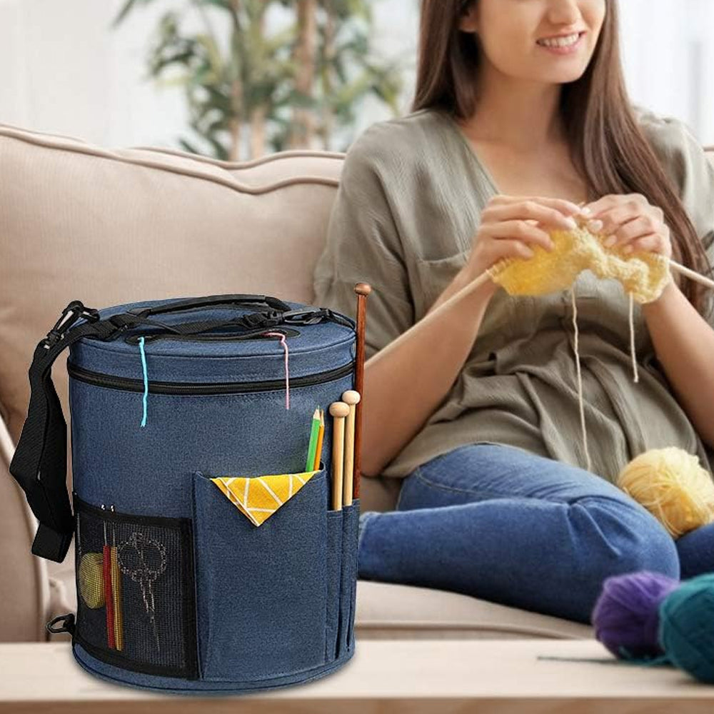 Large Capacity Knitting Tote Storage Bag Portable Yarn Organizer with Shoulder Strap Yarn Bags Blue