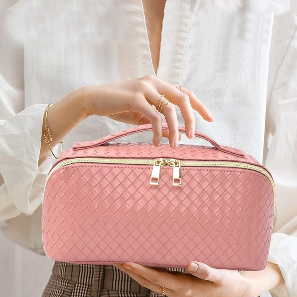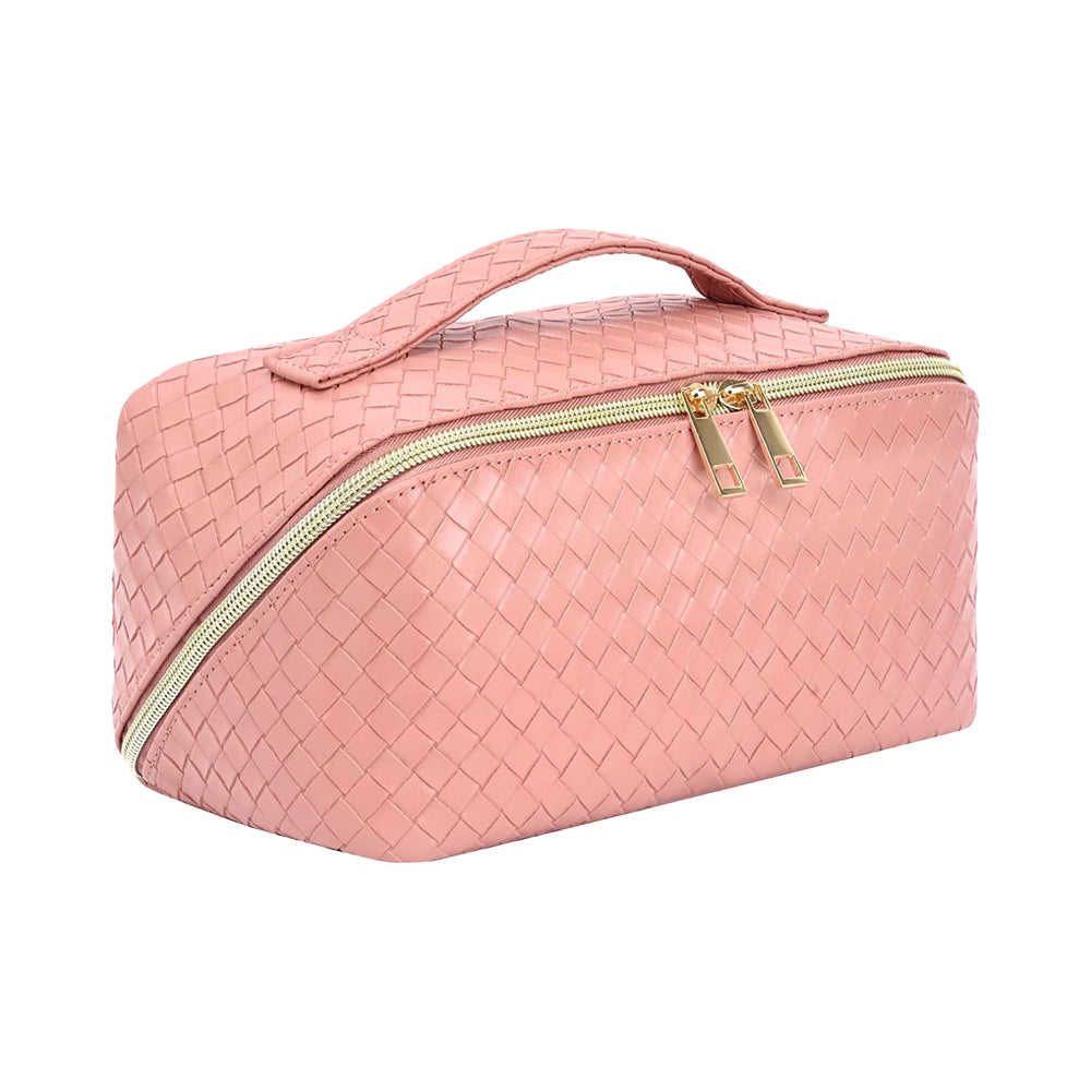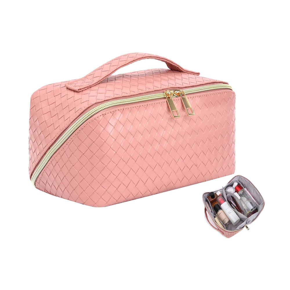 Makeup Bag Large Capacity Travel Cosmetic Bag Portable PU Leather Makeup Bag Organizer Pink