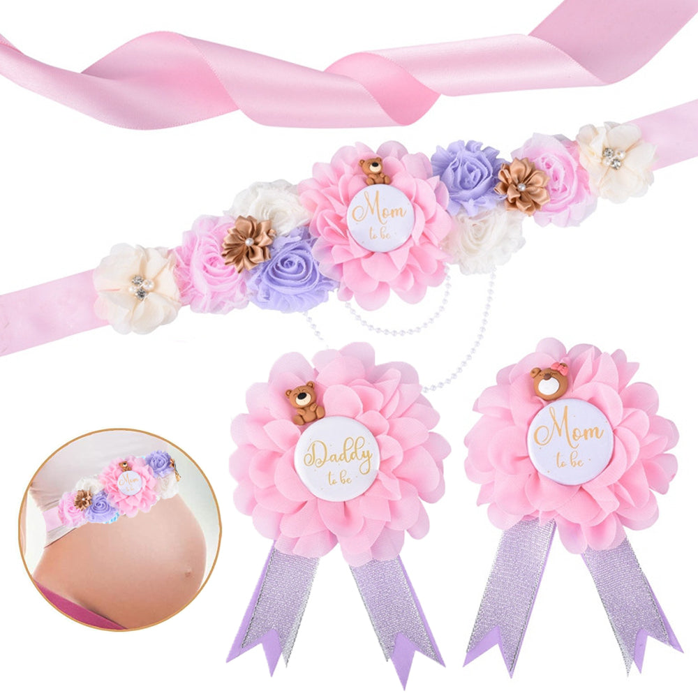 Maternity Sash and Corsage Set to Mom to Be Daddy to Be Baby Shower Decorations Pregnancy Photo Props Pink